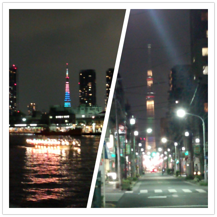 ついでに、東京スカイツリーの通常モード。ブルーのライトアップ「粋」のほうがきれいだなぁ…といつも思う。