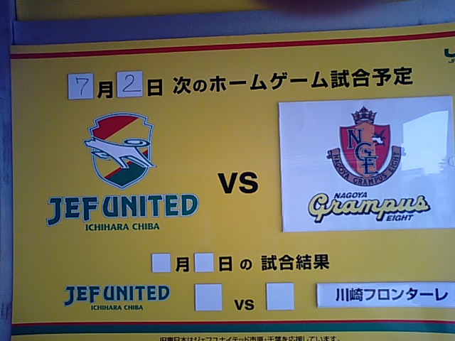 次にジェフを見ることができるのは…グランパス戦@瑞穂の予定。名古屋の夏は暑い兼湿気で、大変だ。