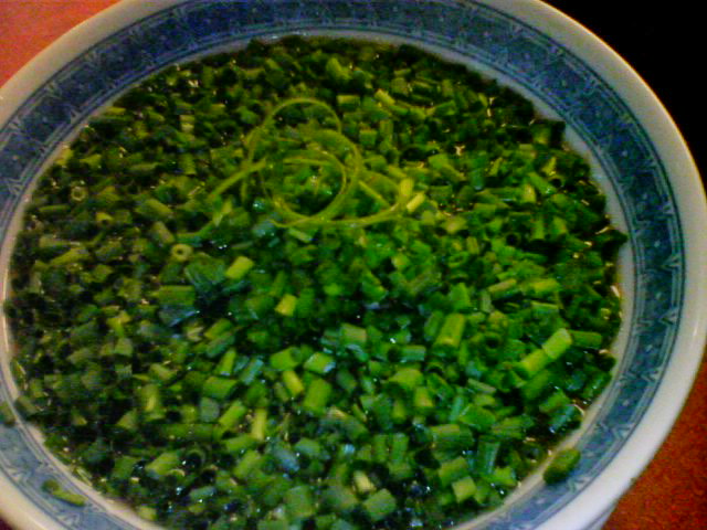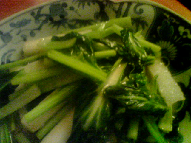 山芋と青菜の炒め物と青葱ラーメン(下に豚の角煮が隠れてる!)