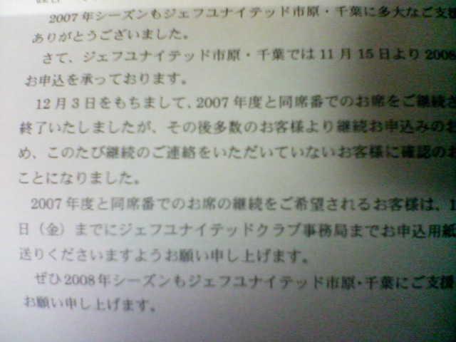 シーズンチケットの指定席継続分の締め切り後、あるいは、オシム監督の回復具合が確認でき次期日本監督が明らかになってから公表するとは、せこいのか狡猾なのか。選手も突然というなんて、絶対変だよ、今のジェフ。選手がプレイしやすい環境といえるのだろうか。