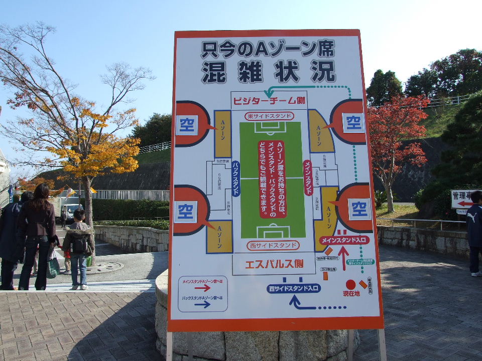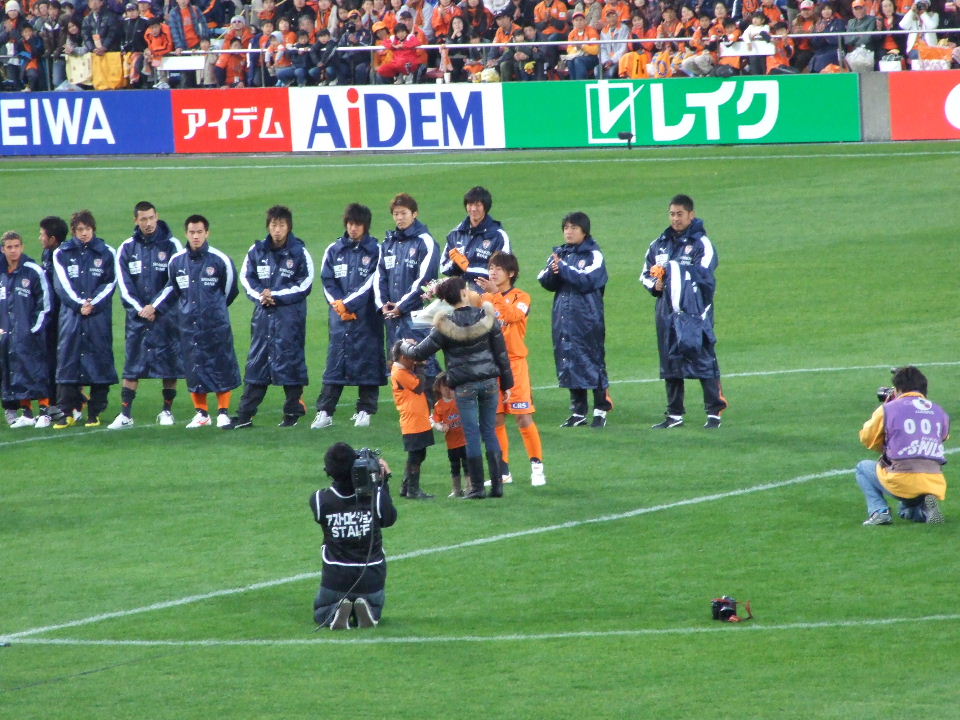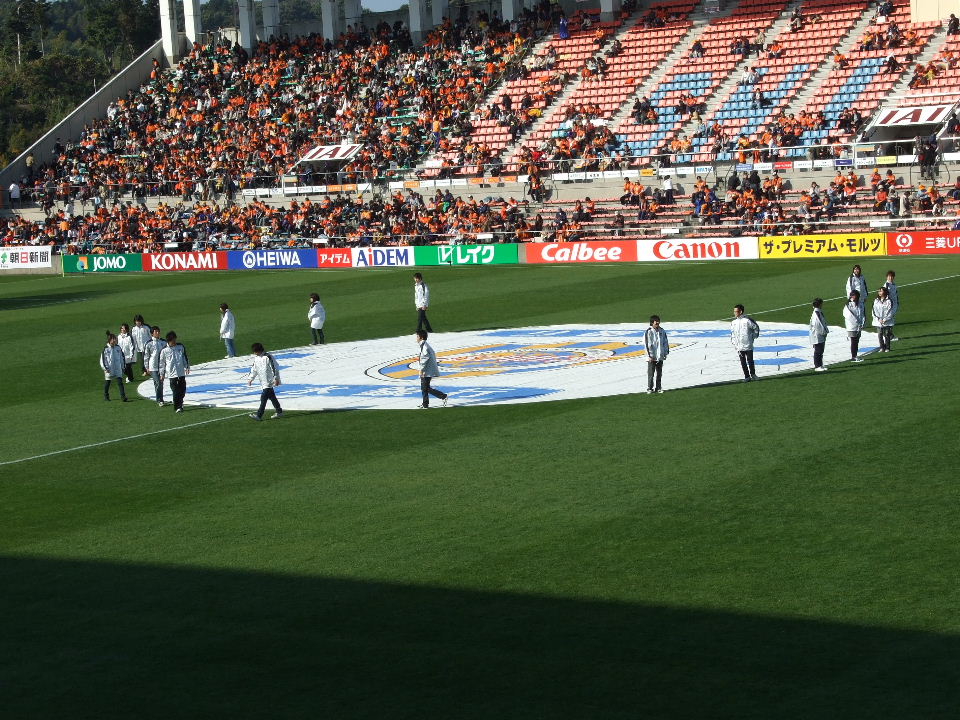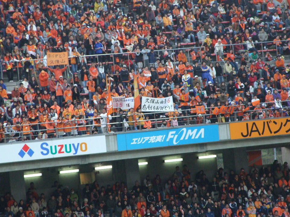 最終節の時間を14時と思っていたのは、管理人だけだろうか?キックオフぎりぎりと思って、とても急いでいたら、選手紹介とかコールとか…あれぇぇ?14:30っ中途半端じゃーん。前節は14時だったし…。ま、チケットなどちゃんと確認しましょうってことです、はい。
