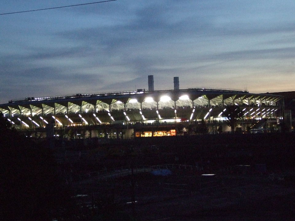 山の中だー。隣がゴルフの打ちっぱなしなんだー。もうずっとゴルフしてない。とか思いつつ、観客席へ。最早人一杯で、いい席は満員御礼。ピッチをみると、右側のエンドが高めに見えたりして。