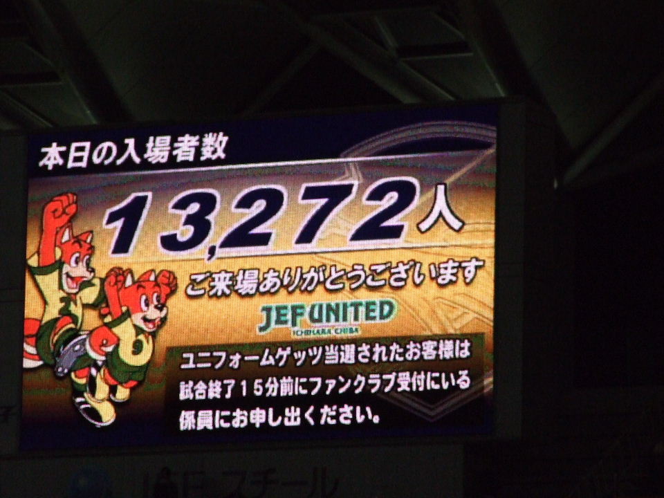 そして、結城の復活を自分の目で確認。ミツキも。結城が入ったとたんに、ジェフ側から声が出始める。「結城、いかなくていいから」とか言う声が聞こえて、大うけ。このあたりから観戦の視点がおかしくなったといえる。ま、仕方ない(何が?)。