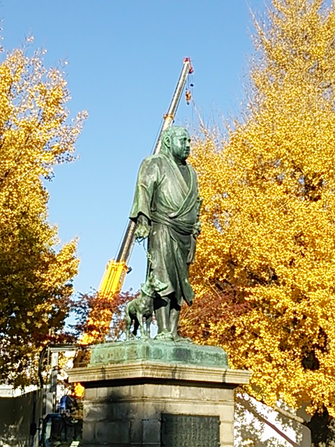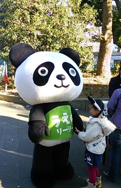 上野公園が、ウォークラリーみたいなイベントのゴールとなっており、はやりのゆるキャラも登場。西郷さんの銅像の後ろが工事中で、この写真を見た友人は、「西郷さんが太刀を背負っている」と。