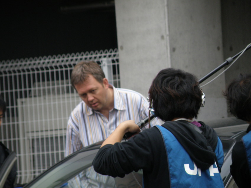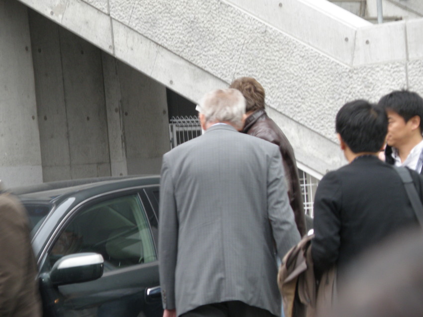 やっぱりねとも思ったが、まさか目の前で、オシムおじいちゃんの姿を見ることができるとは思わなかった。グランパスサポさんたち、拍手、手を振る、撮影と忙しい(汗。ピクシーが出てくるかと思ったのだが…みんな、まさか、オシム待ち??オシムおじいちゃんは、車に乗る前も車からも手を振ってくれた。車に乗り込んでから、インタビューに答えていたみたいです。